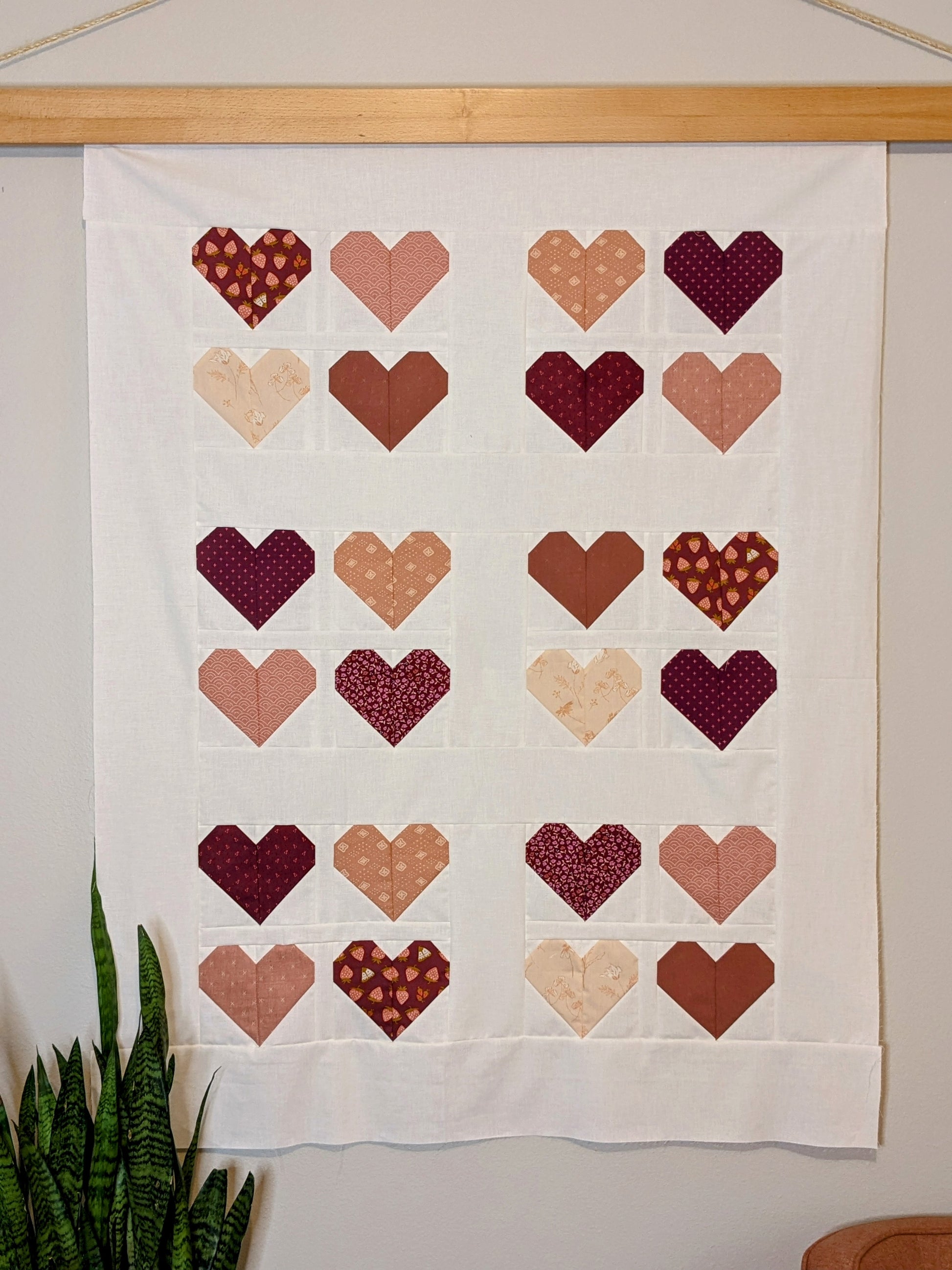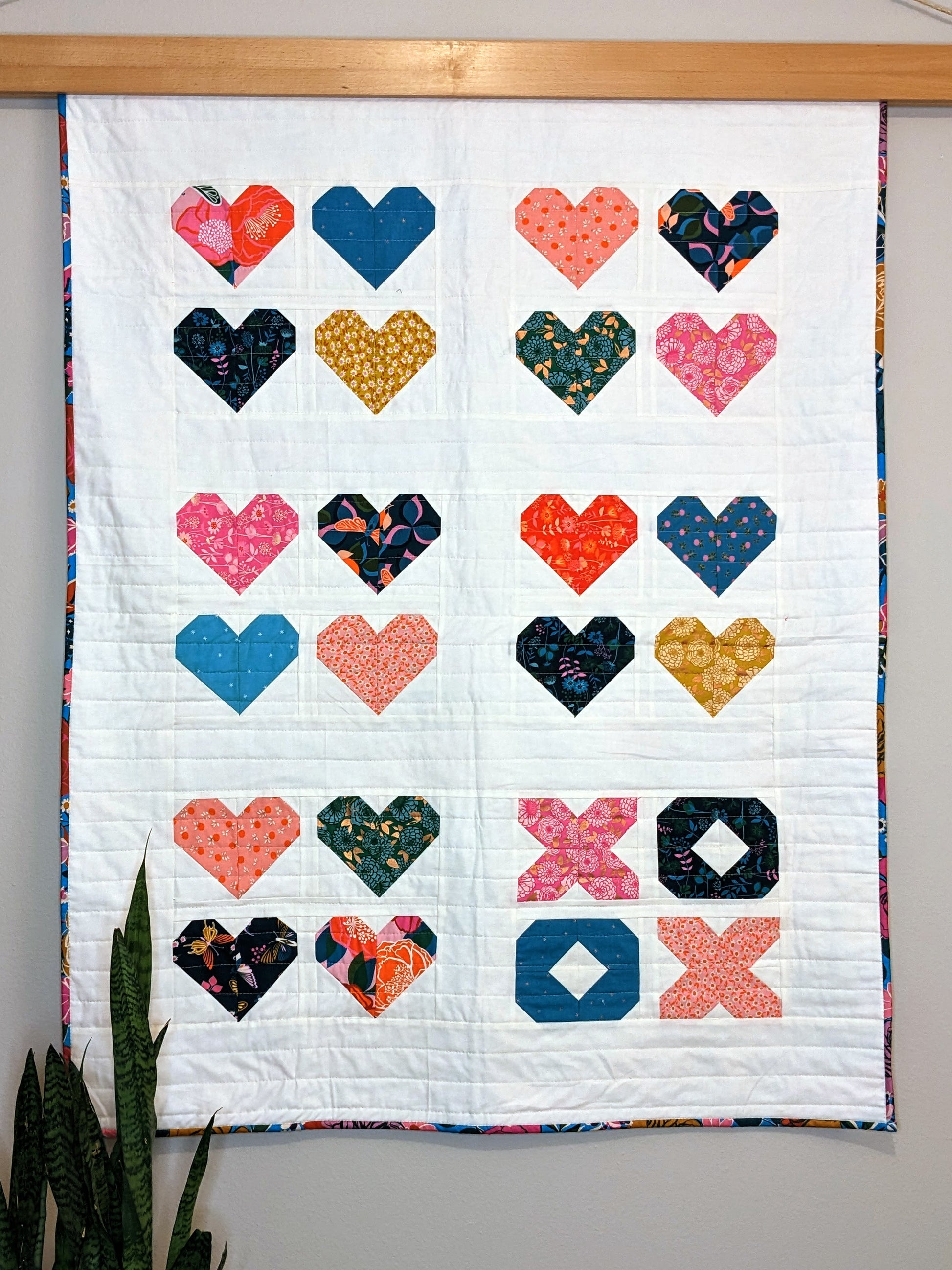 This stunning modern heart quilt can be made in 2 colors or with Fat Quarters! Need a quilt for Valentine's Day, Mother's Day, or a new baby? Then this is the quilt for you!