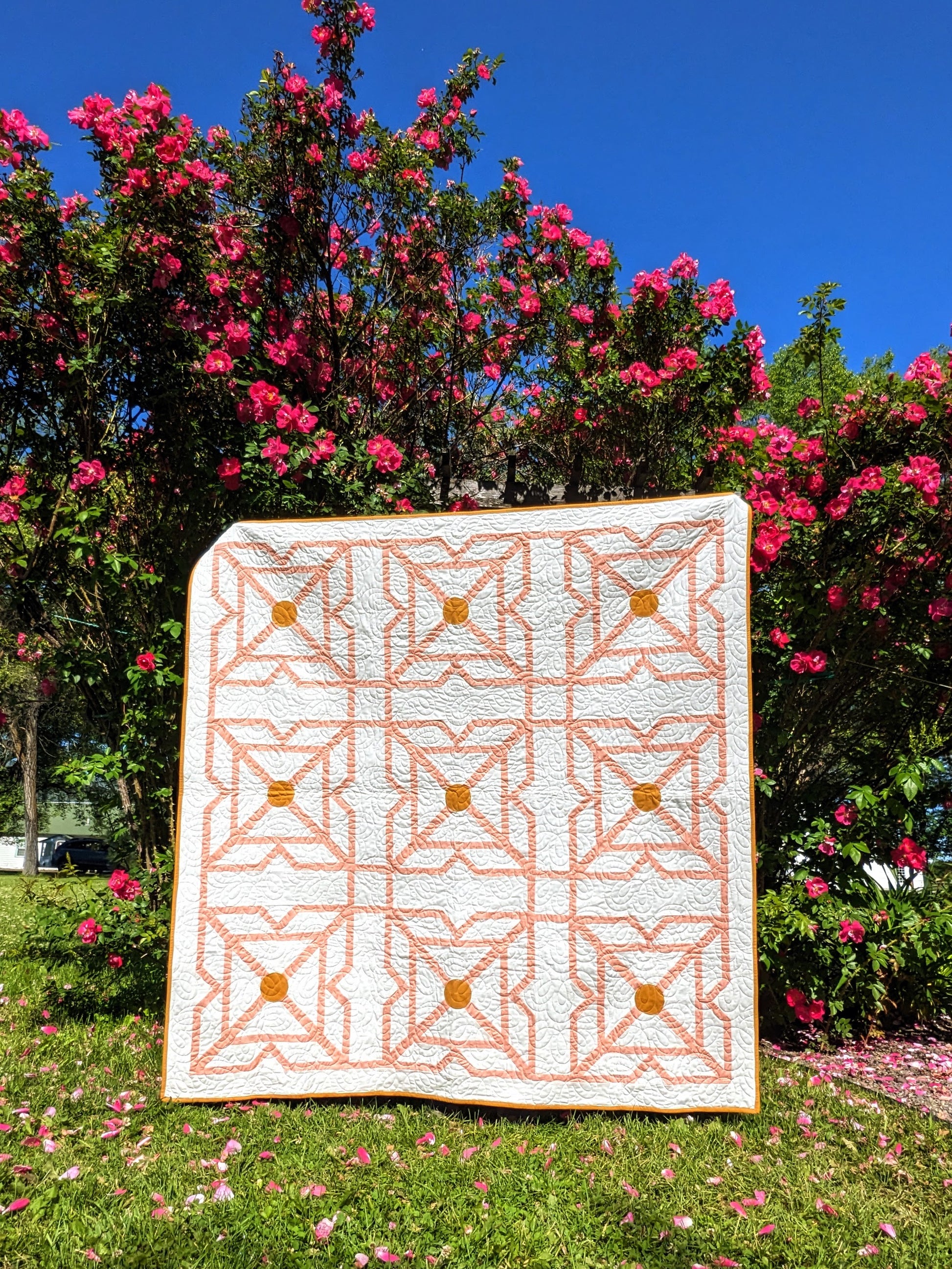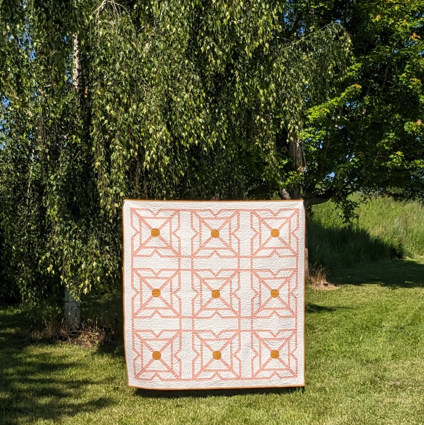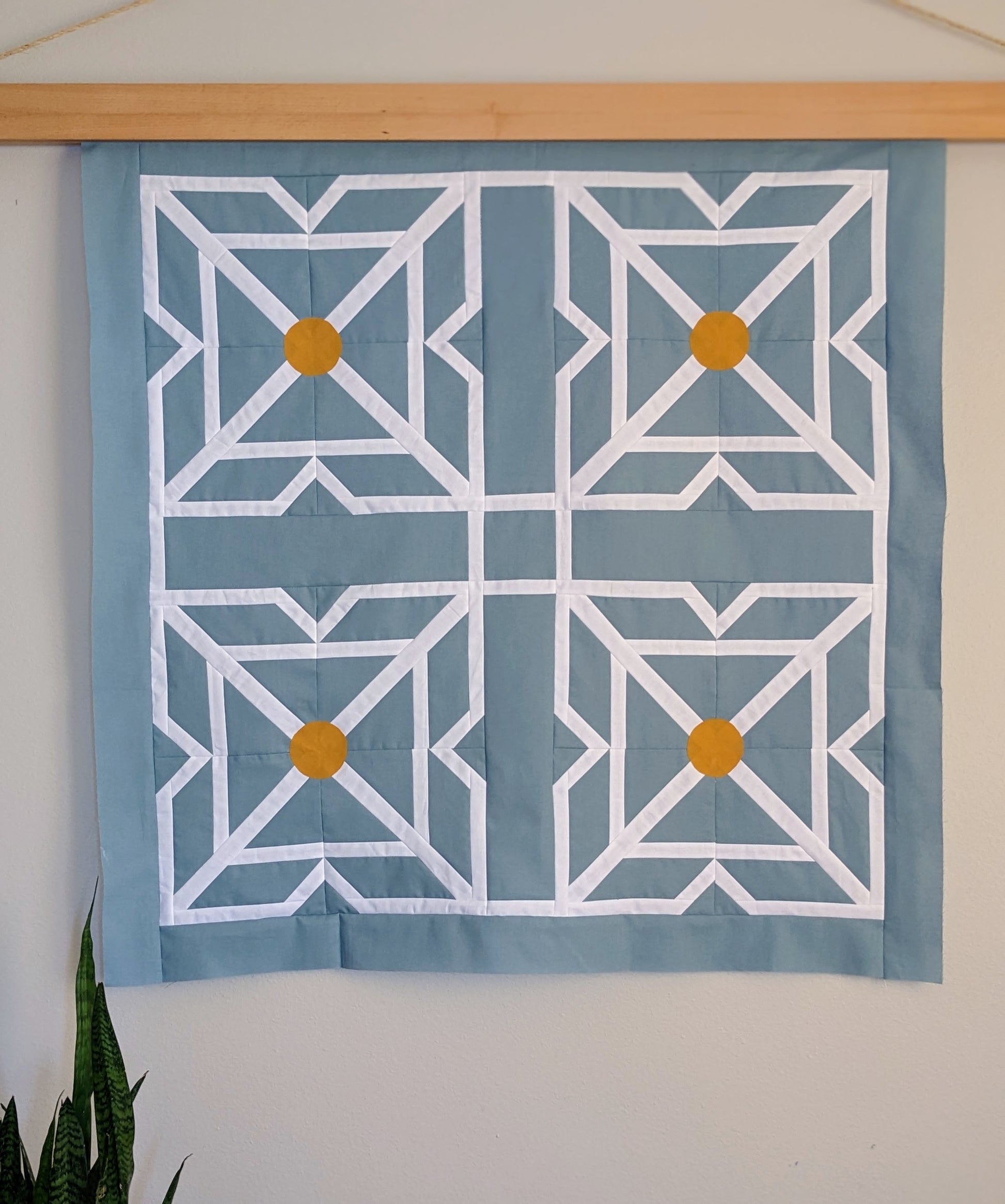 The Emily quilt is a modern flower design pattern that looks great on your wall or as a throw quilt!
