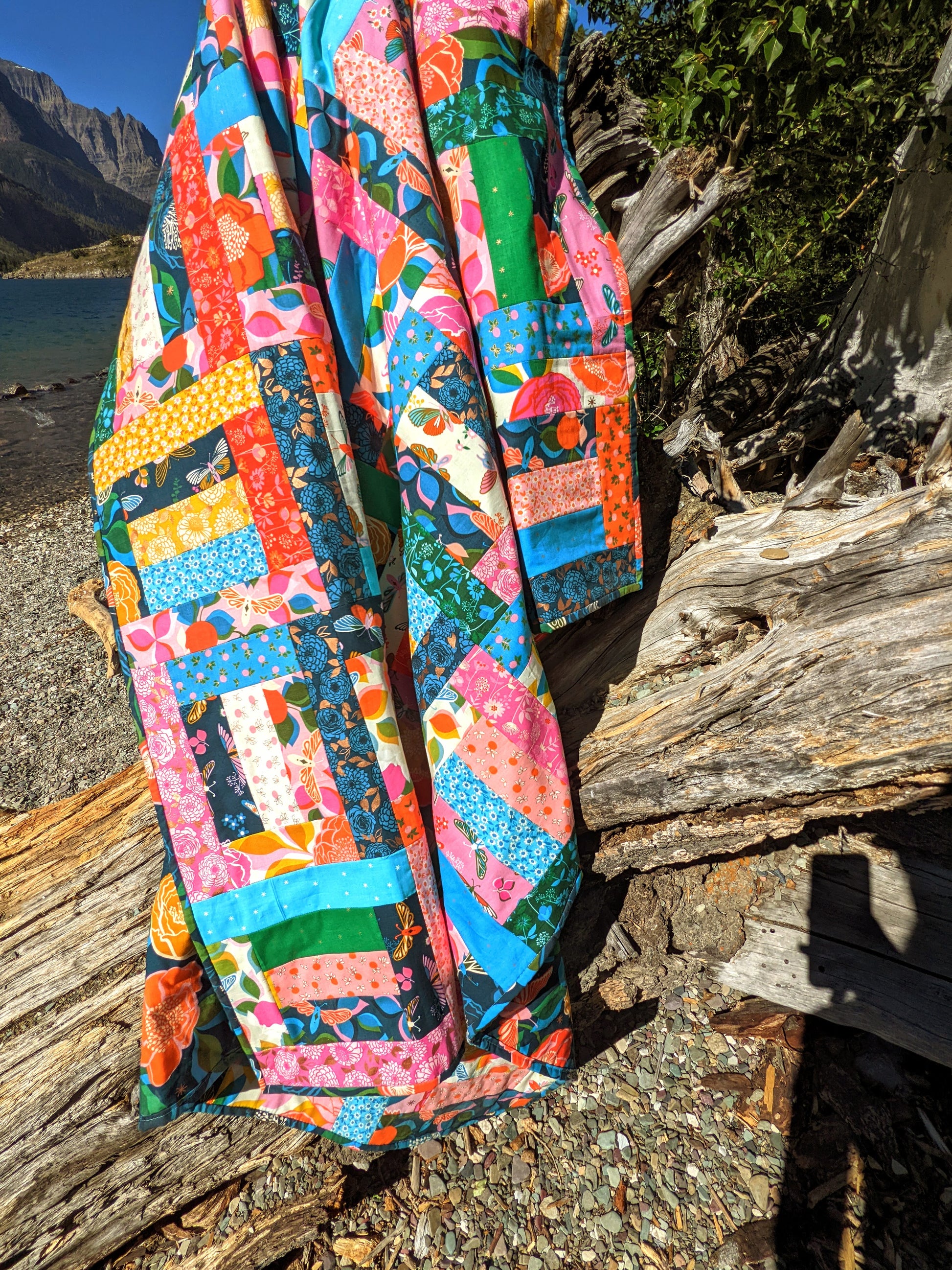 This is a great pattern if you are a beginner quilter or want to make a really quick quilt! You can choose jelly rolls, yardage, or scraps to make this pattern! This quilt pattern is traditionally pieced and goes together quickly. I love this pattern for a picnic quilt, but it looks great anywhere!