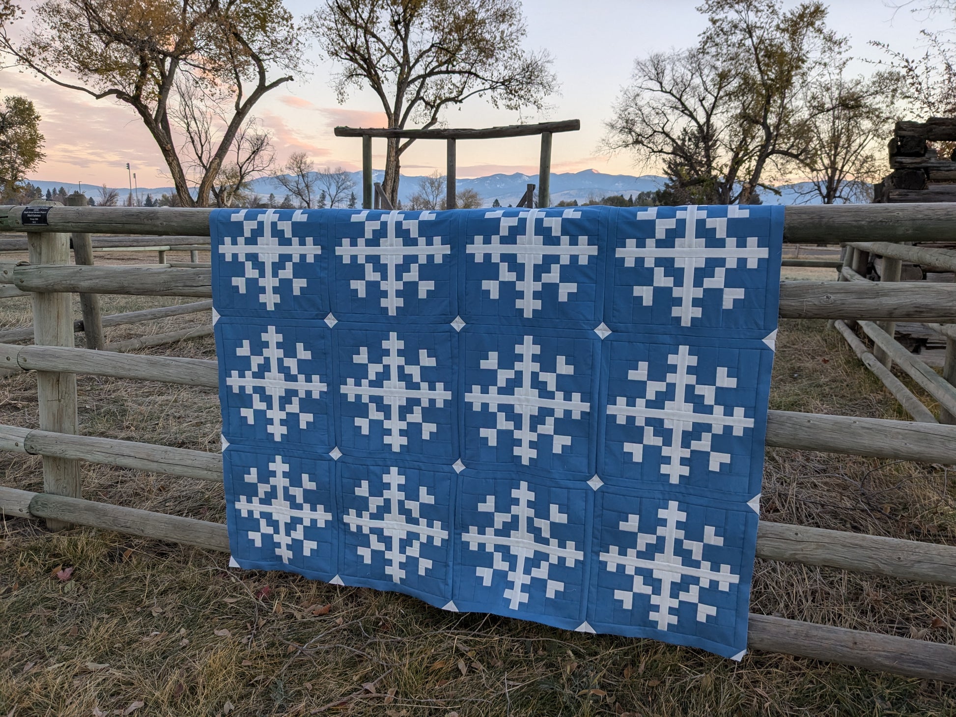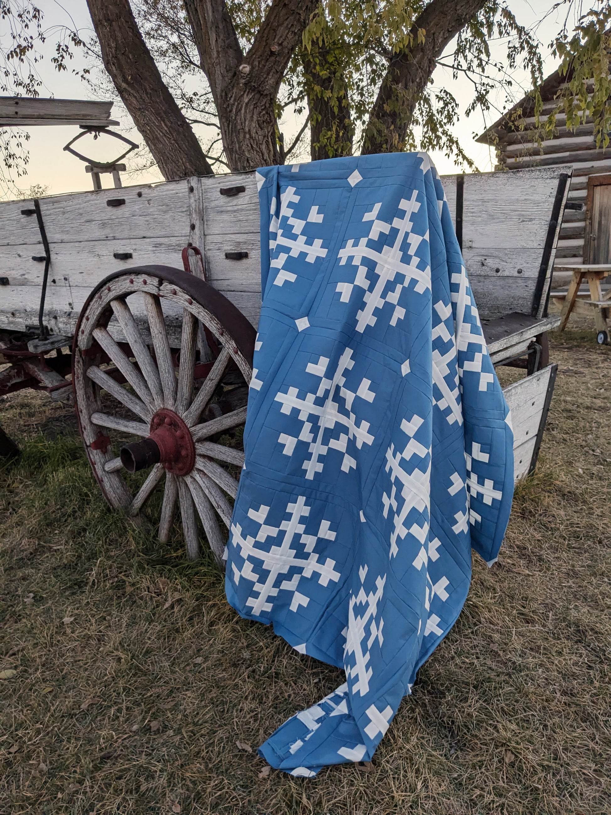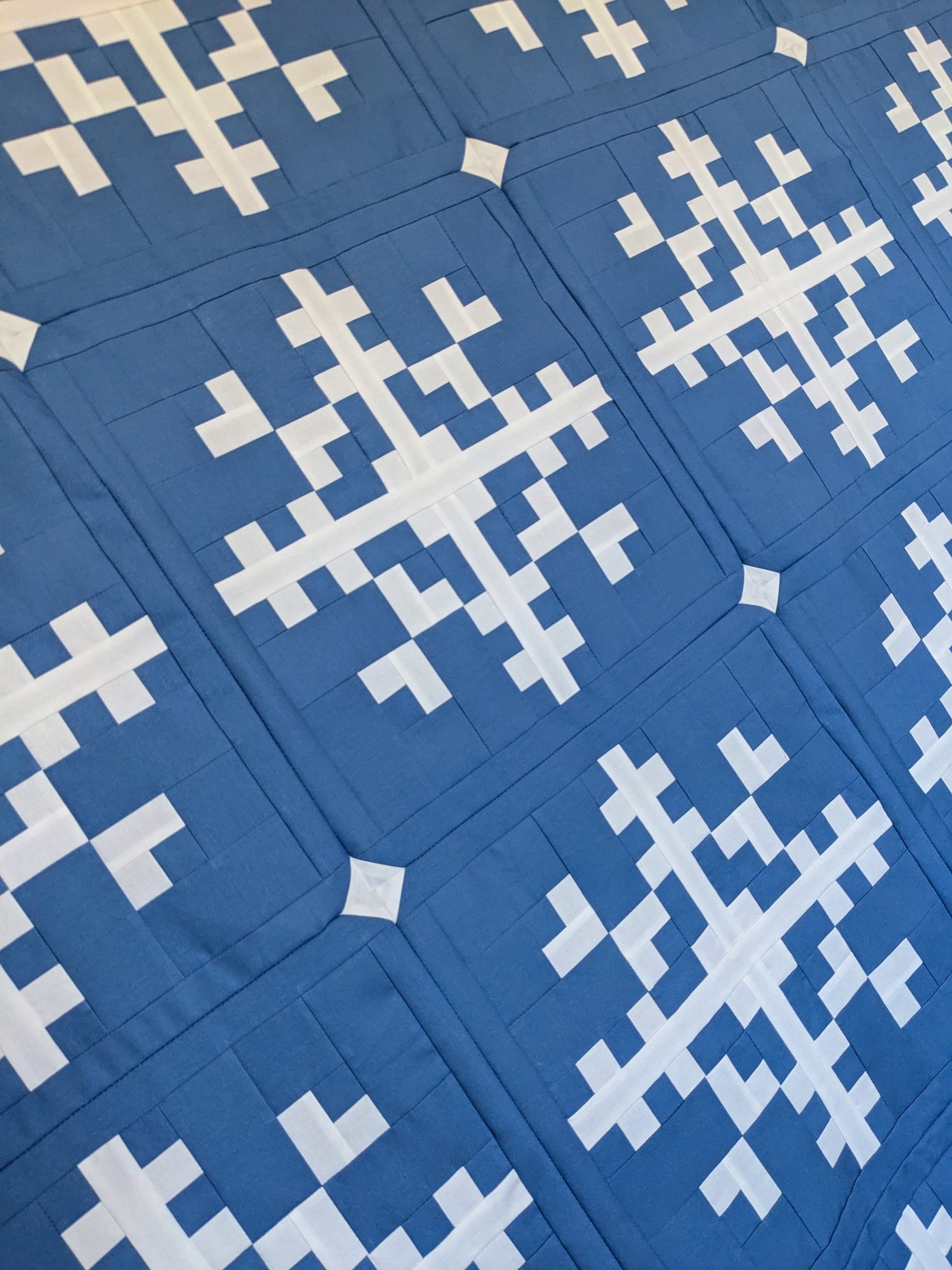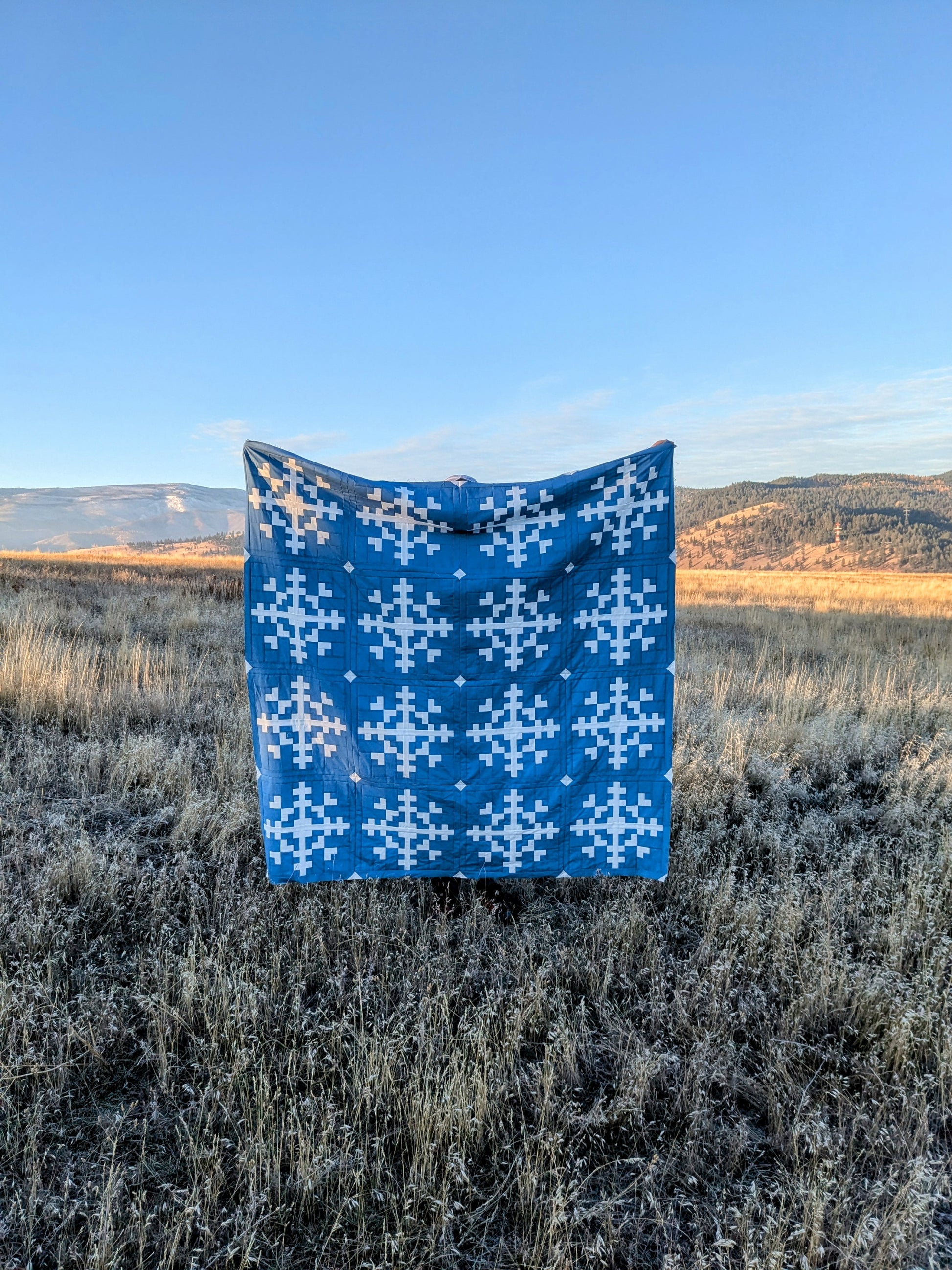 I absolutely love snowflakes, and this quilt reminds me of the magic of snowflakes swirling down to the ground! It’s a traditionally pieced pattern with multiple size options, perfect for any project.