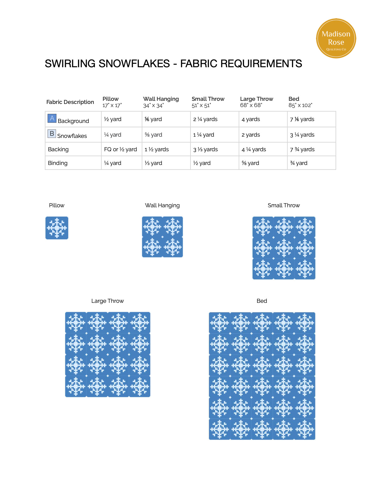 I would love to see what you create with this pattern! Use hashtags #swirlingsnowflakesquilt and #madisonrosequiltingco on social media.